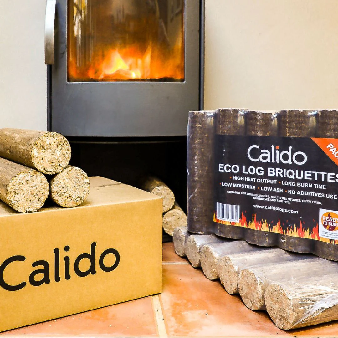 Our Calido Eco Log Briquettes are premium, UK-made wood briquettes crafted from locally sourced sawmill residue, offering an eco-friendly heating solution. Slightly smaller in diameter and shorter than our previous Calido Wood Briquettes, they are designed to fit a wider range of stoves without needing to be broken.