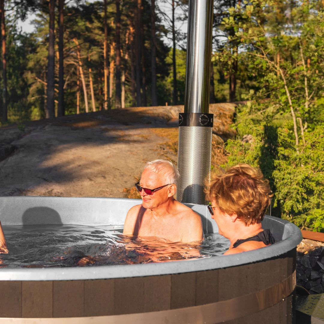 For heating, the hot tub comes fitted with the efficient black Cube heater, crafted from marine-grade aluminium. This powerful stove boasts a gross heat output of 48 kW, with 35 kW transferred directly to the water, ensuring quick and effective heating even for larger tubs. Alternatively, for those seeking even faster heat-up times, the tub is also compatible with the stunning 42 kW TUBE heater - a bronze-painted masterpiece of engineering.