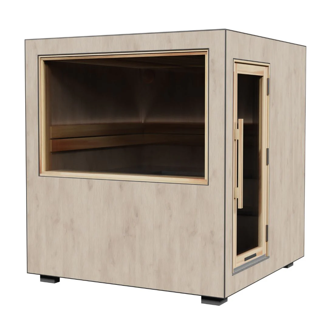 Delivered fully assembled and ready to use, the sauna is simply positioned on a solid base with all electrical connections pre-installed.