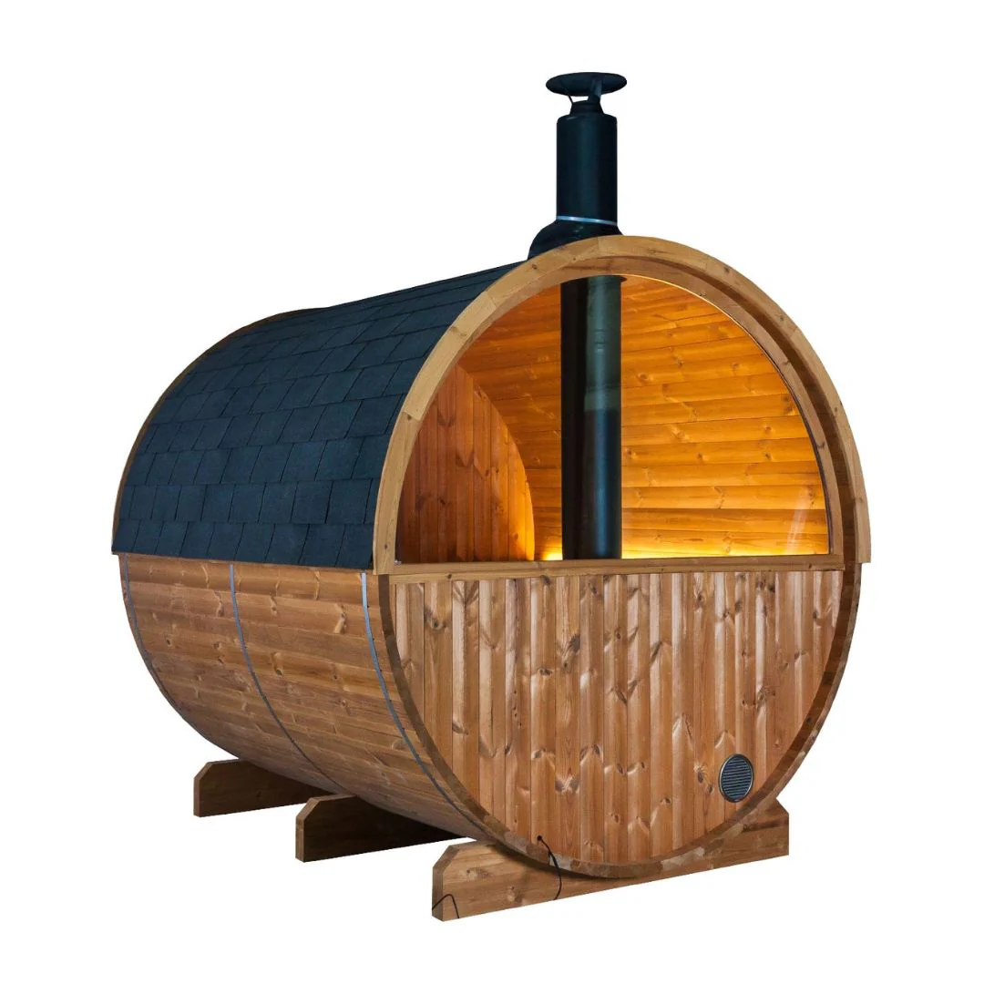 - Spacious 4 to 6 person outdoor barrel sauna