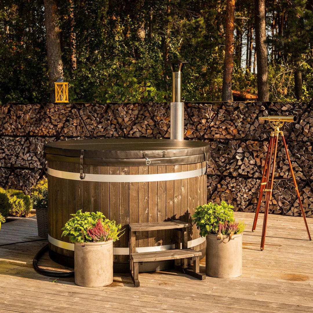 The outer shell is made from Finnish spruce panels, stained in either Thermowood or Coal Black. These finishes not only enhance the tub’s appearance but also protect the wood from moisture, UV rays, and general wear, ensuring it retains its attractive look over time.
